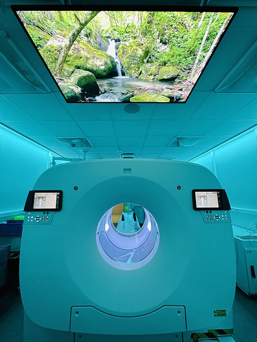 Elle permet de réaliser l’examen, sur une durée raccourcie, dans un environnement plus confortable et chaleureux pour les patients. Cette diminution de temps d’examen de 40 % en moyenne permet d’augmenter la capacité d’accueil quotidienne du service limitant d’autant les délais d’attente pour bénéficier de cet examen.
